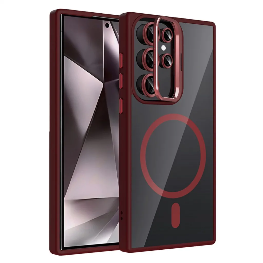 Joko Samsung Galaxy S23 Ultra Remim Lensli Magsafe Standlı Kapak - Bordo
