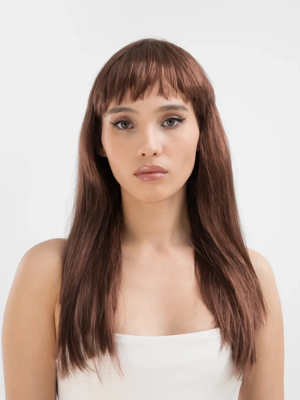 Kahve Renk Uzun Düz Parti Peruğu - Uzun Kahverengi Peruk