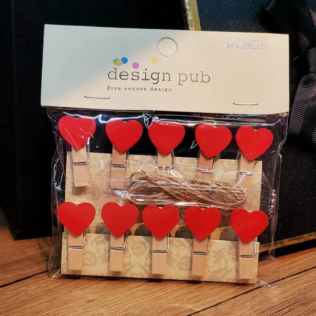 Mini ahşap tasarımlı mandal ve mandal üzerinde bulunan kırmızı kalp mandala özel bir görüntü vermiştir.