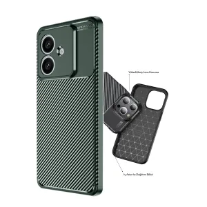 Oppo A3 Kılıf Auto Focus Karbon Kapak - Koyu Yeşil