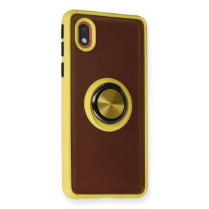 Samsung Galaxy A02 Kılıf Montreal Yüzüklü Silikon Kapak - Sarı