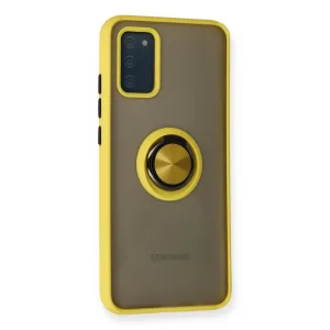 Samsung Galaxy A02s Kılıf Montreal Yüzüklü Silikon Kapak - Sarı