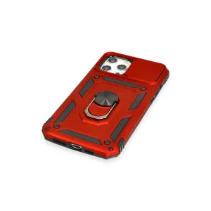 İphone 12 Pro Max Kılıf Pars Lens Yüzüklü Silikon - Kırmızı