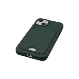 İphone 14 Plus Kılıf Kelvin Kartvizitli Silikon - Koyu Yeşil