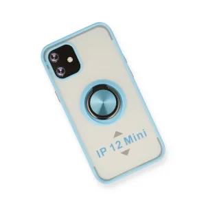 İphone 12 Mini Kılıf Montreal Yüzüklü Silikon Kapak - Buz Mavi