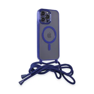 İphone 14 Pro Max Kılıf Divo Lazer Askılı Magsafe Kapak - Mavi