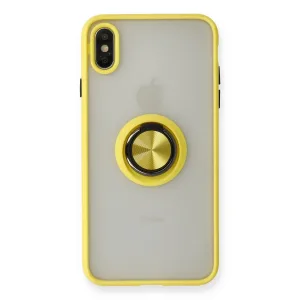 İphone X Kılıf Montreal Yüzüklü Silikon Kapak - Sarı