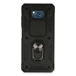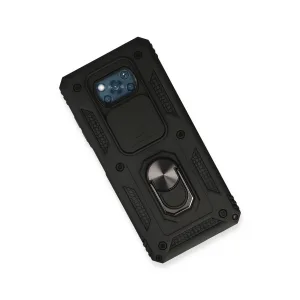 Xiaomi Pocophone X3 Kılıf Pars Lens Yüzüklü Silikon - Siyah