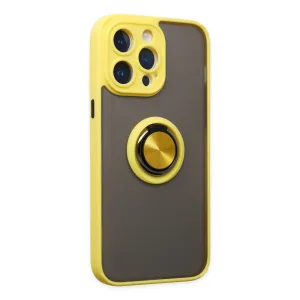 İphone 14 Pro Kılıf Montreal Yüzüklü Silikon Kapak - Sarı