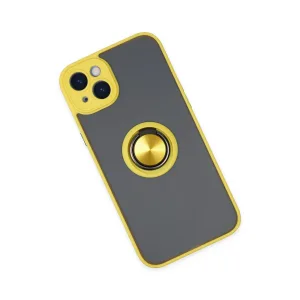 İphone 14 Kılıf Montreal Yüzüklü Silikon Kapak - Sarı