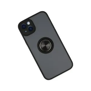 İphone 14 Kılıf Montreal Yüzüklü Silikon Kapak - Siyah