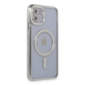 İphone 11 Kılıf Joke Simli Magneticsafe Kılıf - Gümüş