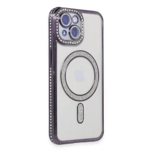 İphone 14 Kılıf Joke Simli Magneticsafe Kılıf - Derin Mor
