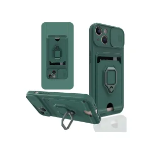 İphone 14 Plus Kılıf Zuma Kartvizitli Yüzüklü Silikon - Yeşil