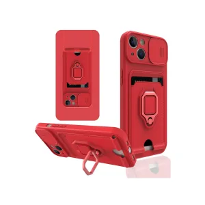 İphone 14 Kılıf Zuma Kartvizitli Yüzüklü Silikon - Kırmızı