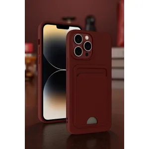 İphone 13 Pro Kılıf Kelvin Kartvizitli Silikon - Bordo