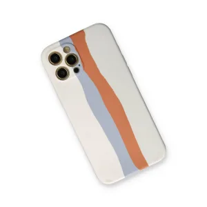 İphone 12 Pro Max Kılıf Ebruli Lansman Silikon - Beyaz-turuncu