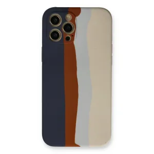 İphone 12 Pro Max Kılıf Ebruli Lansman Silikon - Lacivert-krem