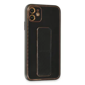 İphone 12 Kılıf Coco Karbon Standlı Kapak - Siyah