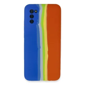 Samsung Galaxy A03s Kılıf Ebruli Lansman Silikon - Mavi-turuncu