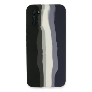 Samsung Galaxy A03s Kılıf Ebruli Lansman Silikon - Siyah-lacivert