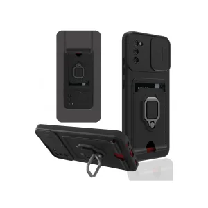 Samsung Galaxy A03s Kılıf Zuma Kartvizitli Yüzüklü Silikon - Siyah