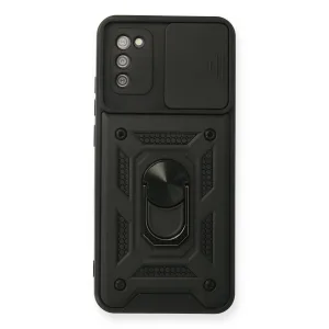 Samsung Galaxy A03s Kılıf Pars Lens Yüzüklü Silikon - Siyah
