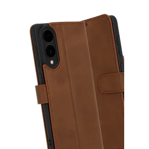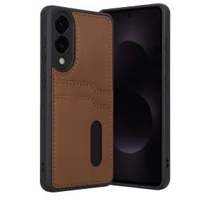 Samsung Galaxy S25 Edge Sara Kartvizitli Deri Kılıf - Taba