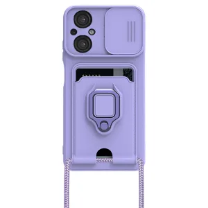 Xiaomi Poco M5 Kılıf Zuma Kartvizitli Yüzüklü Silikon - Lila