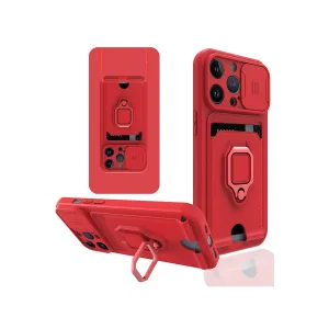 İphone 13 Pro Max Kılıf Zuma Kartvizitli Yüzüklü Silikon - Kırmızı