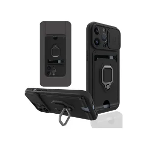 İphone 13 Pro Kılıf Zuma Kartvizitli Yüzüklü Silikon - Siyah