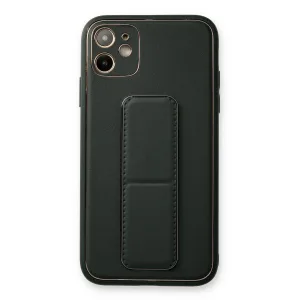 İphone 12 Kılıf Coco Deri Standlı Kapak - Füme