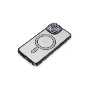 İphone 15 Kılıf Joke Simli Magneticsafe Kılıf - Siyah