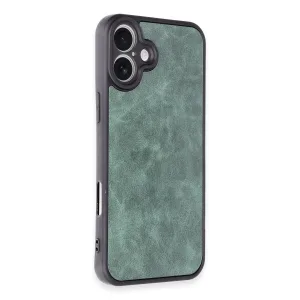 İphone 16 Kılıf Aras Deri Kapak - Koyu Yeşil