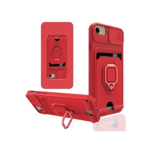 İphone 7 Kılıf Zuma Kartvizitli Yüzüklü Silikon - Kırmızı