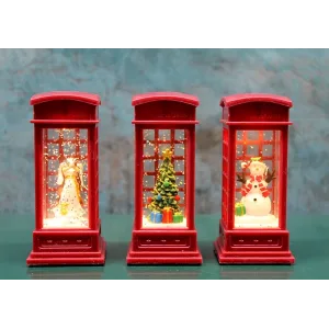 Telefon Kulübesi Tasarımı Yılbaşı Temalı Işıklı Müzikli Kar Küresi 3210