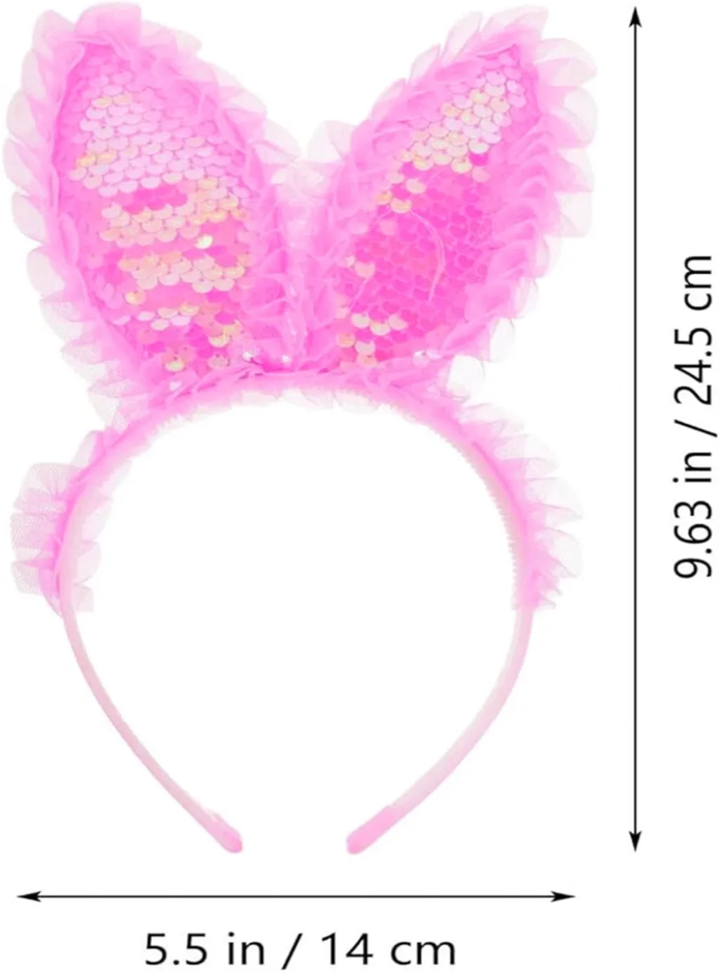 Kenarları Dantelli Fuşya Pullu Payetli Led Işıklı Tavşan Kulak Taç ile: