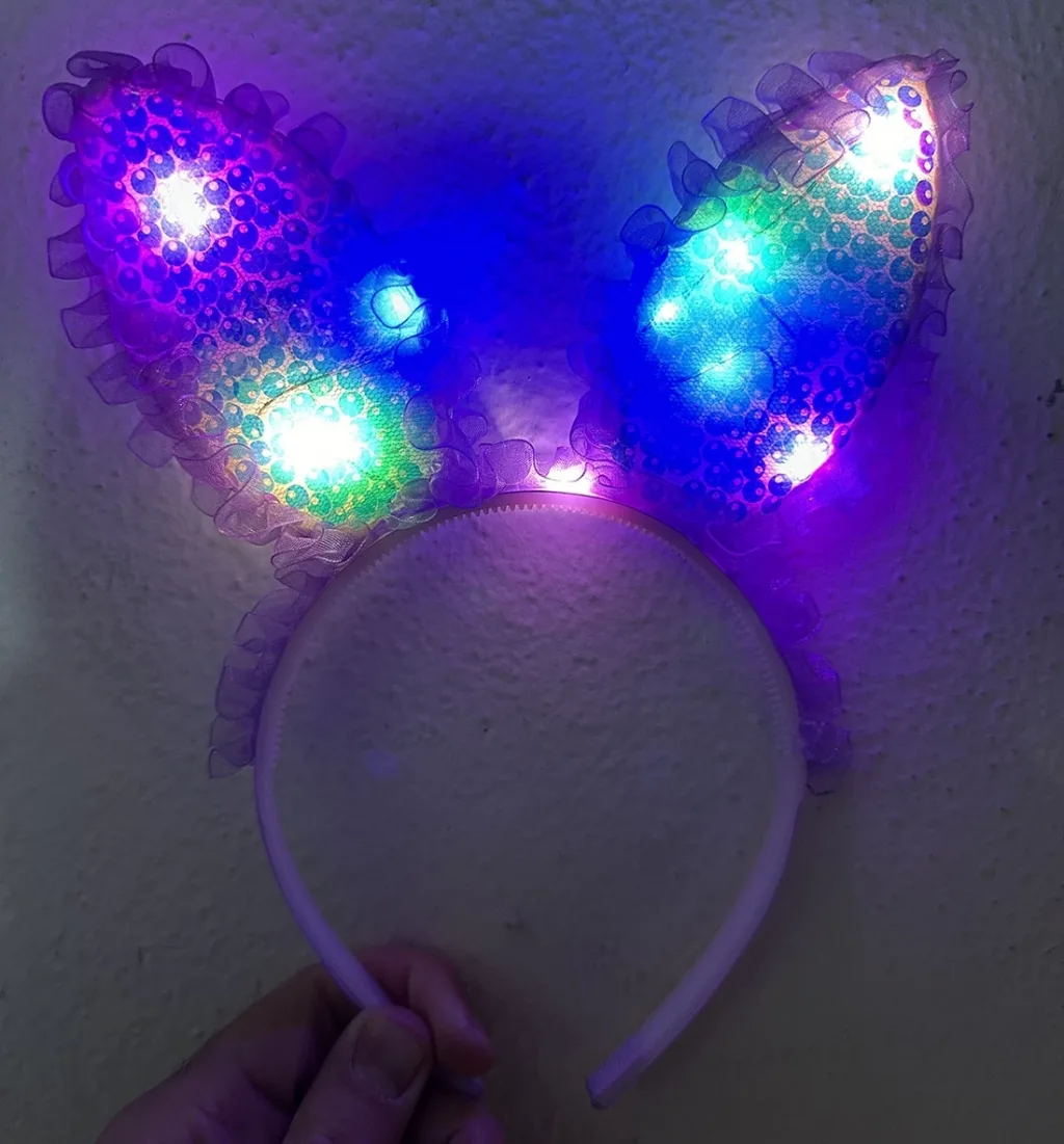 Kenarları Dantelli Mor Pullu Payetli Led Işıklı Tavşan Kulak Taç ile: