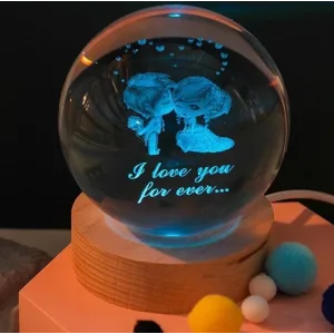 Dekoratif Öpüşen Sevgili Tasarımlı Ahşap Altlıklı Işıklı Cam Küre Büyük Boy