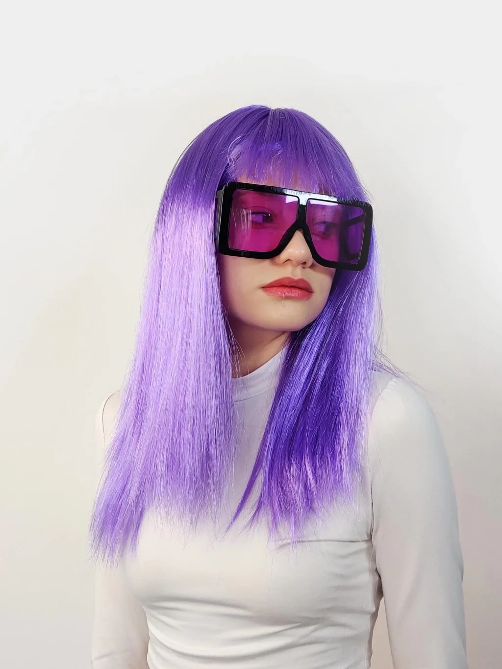 Lila Renk Uzun Düz Parti Peruğu