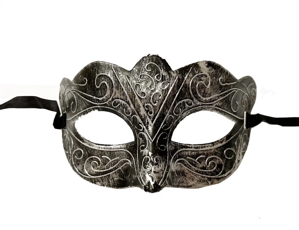 Antik gri gümüş renginin ve eskitilmiş görünümünün verdiği özgünlük ile Venedik maskeleri dünyasına adım atın. Bu özel maske, maskeli baloların ve temalı partilerin vazgeçilmez aksesuarı olacak.