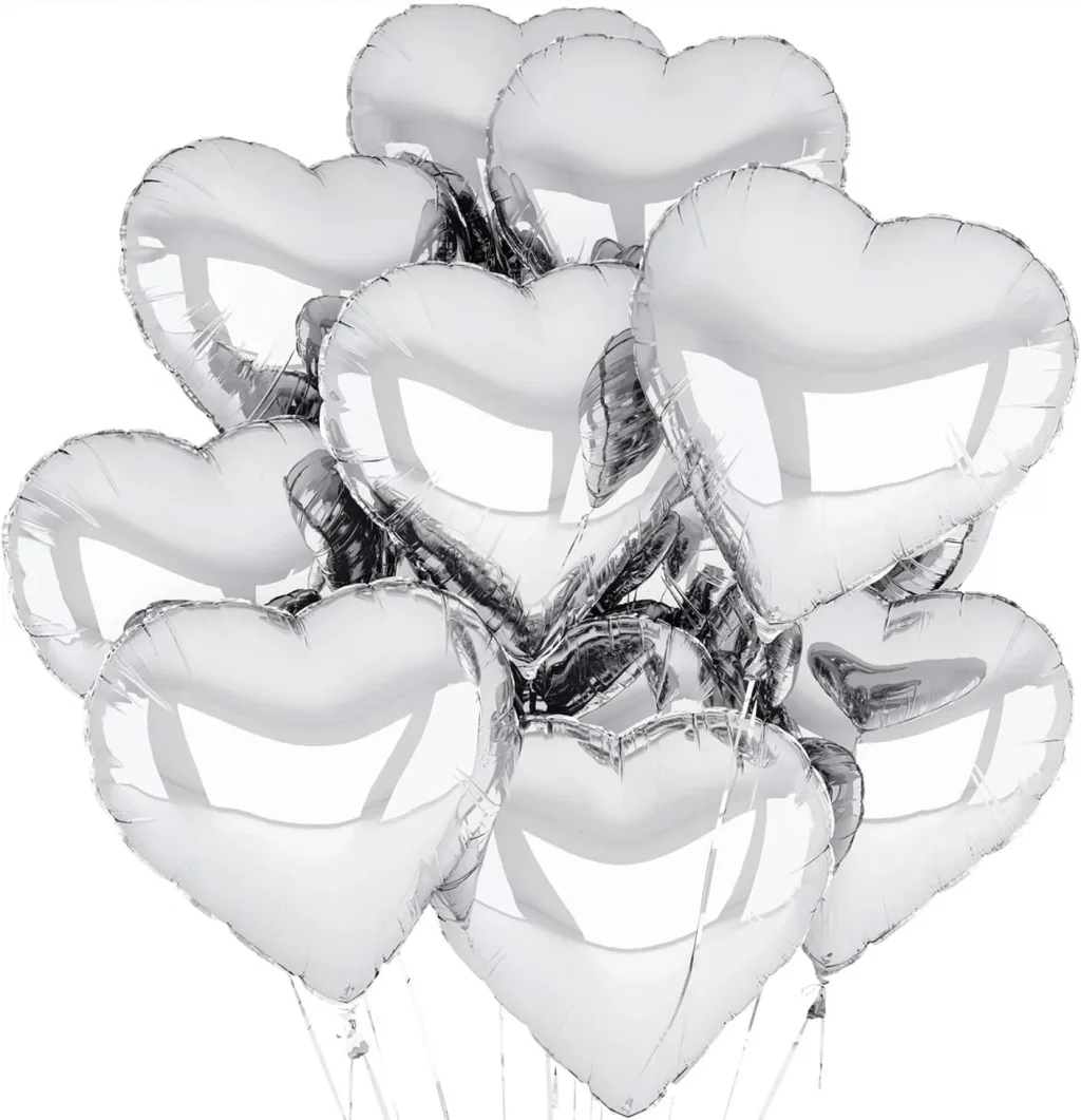 Metalize Parlak Gümüş Şekilli Kalp Balon Folyo 45 cm 10 Adet