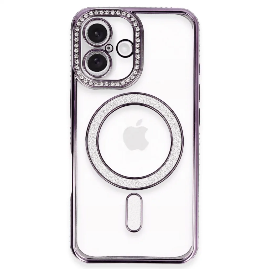 Newface İphone 16 Kılıf Joke Simli Magneticsafe Kılıf - Derin Mor