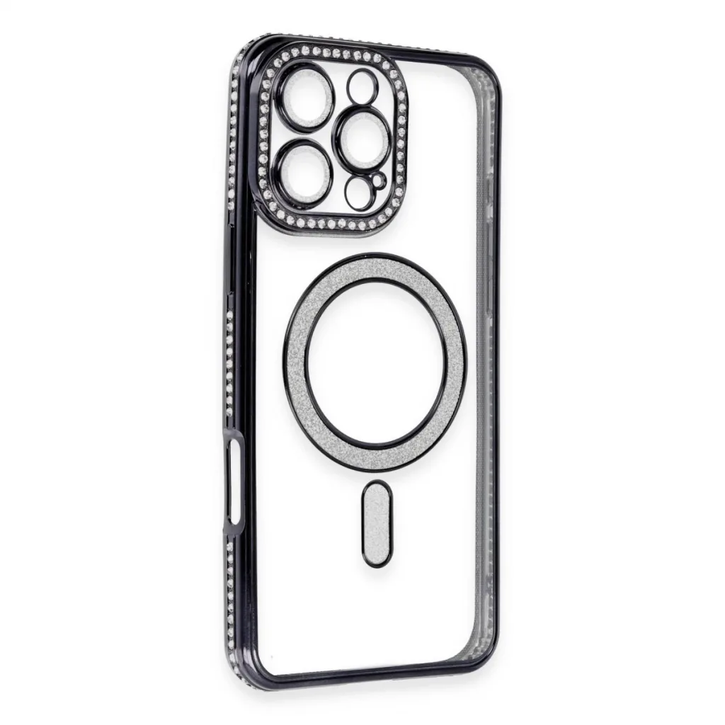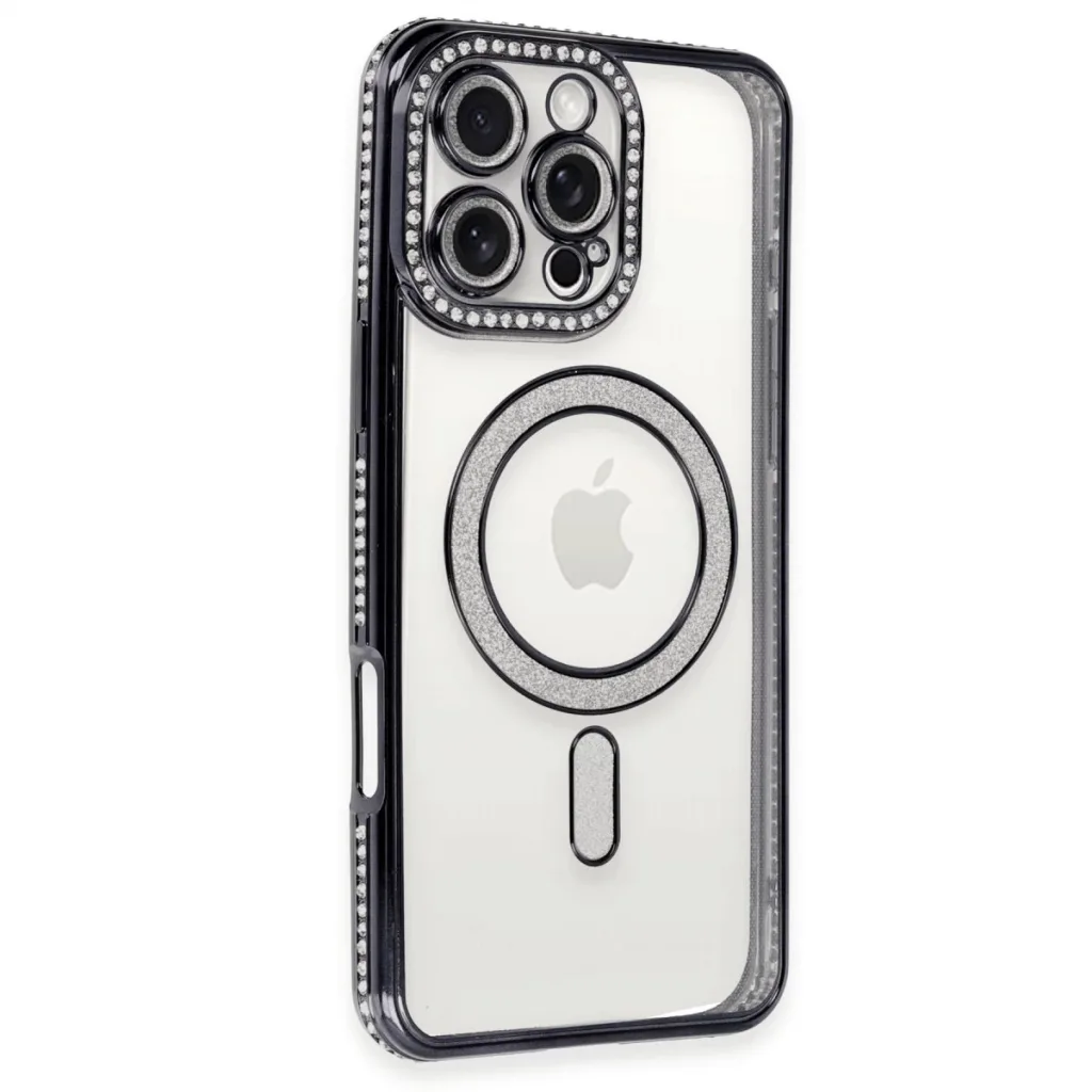 Newface İphone 16 Pro Max Kılıf Joke Simli Magneticsafe Kılıf - Siyah