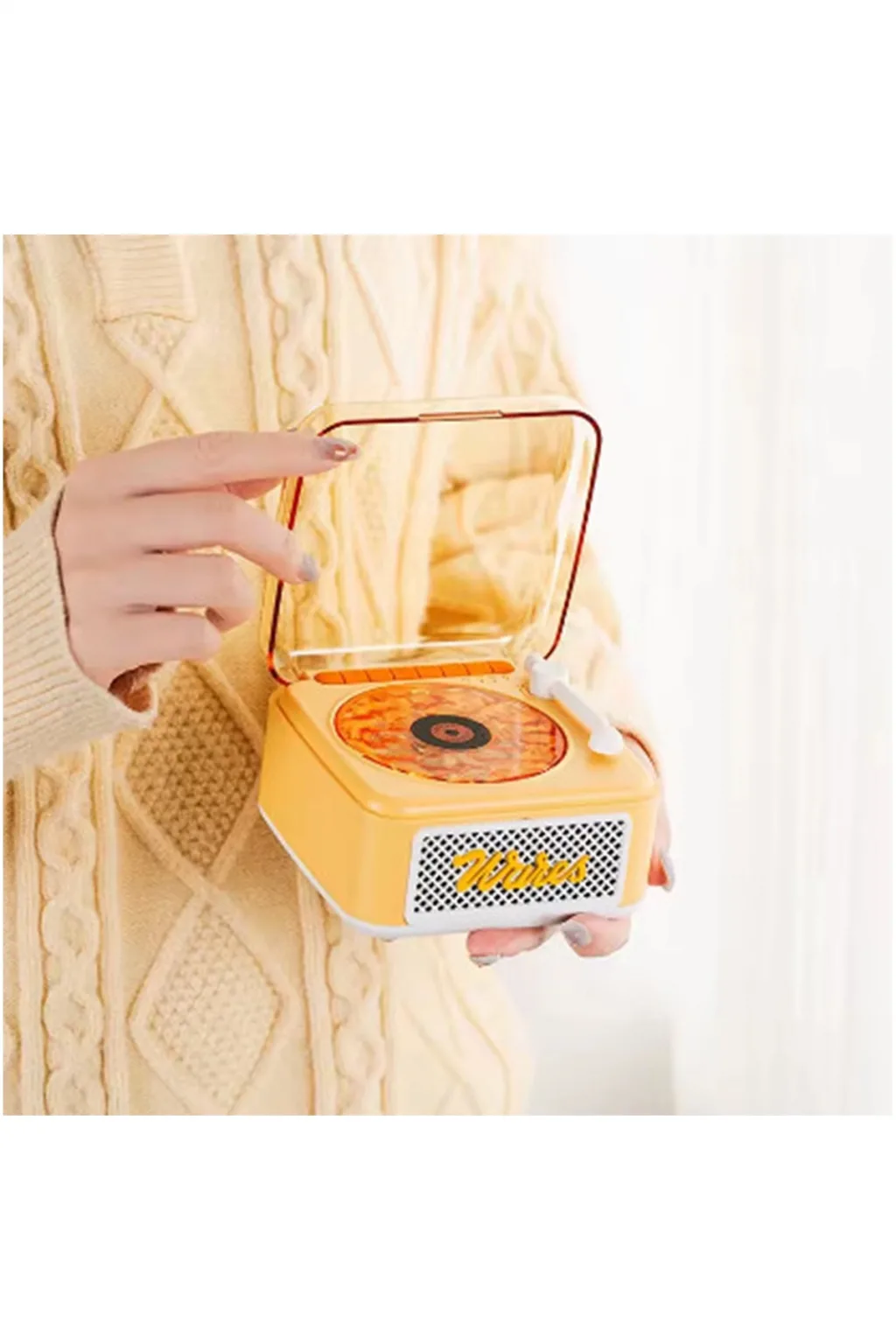 Nostalji Mini Plak Görünümlü Radyolu Bluetooth Hoparlör 3D Ses Dalgası Retro Müzik Plak