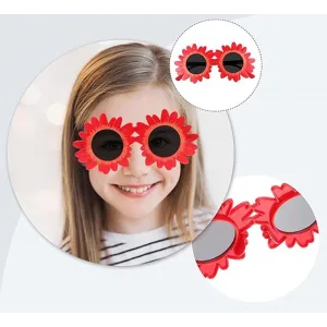 Kırmızı Renk Papatya Şekilli Parti Gözlüğü 18x10 Cm