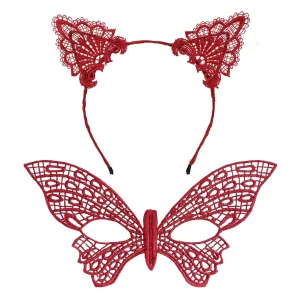 Alevin Zarafeti Kırmızı Dantel Maske Ve Taç Seti 4 No – Kadın Kostüm Tamamlayıcı