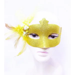 Sim İşlemeli İnci Boncuk Detaylı Tüylü Balo Maskesi Altın Renk 13x18 Cm