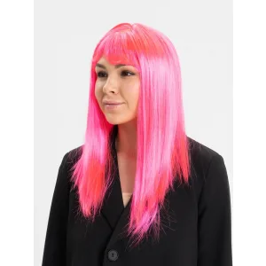 Şeker Pembesi Koyu Pembe Renk Uzun Düz Parti Peruğu