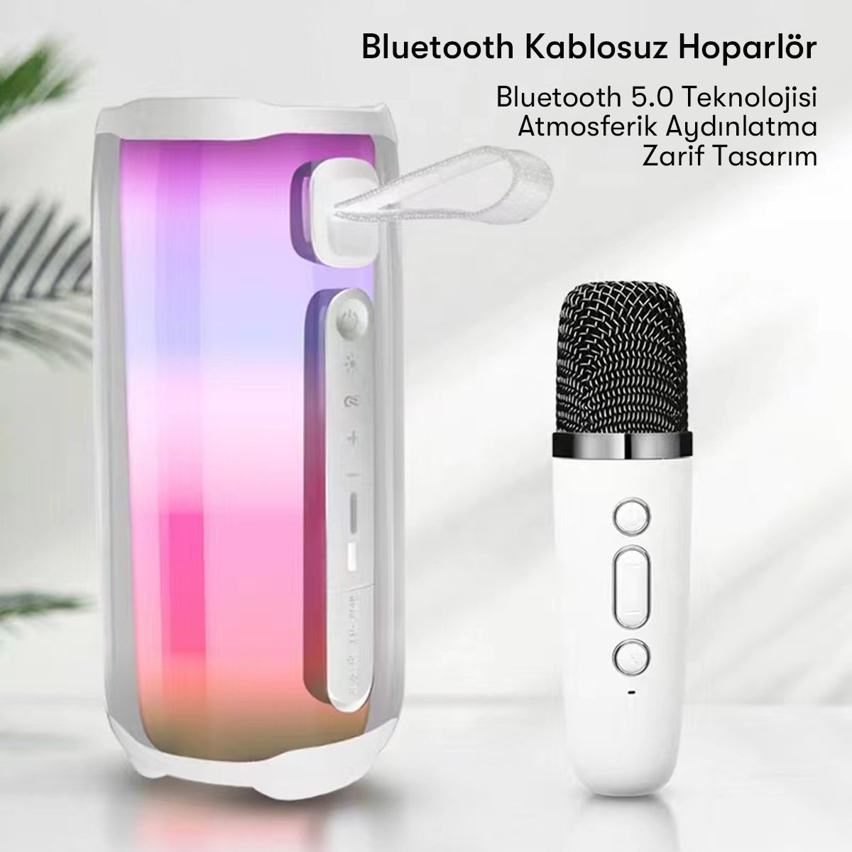 Pluse 5 Mikrofonlu Rgb Kablosuz Hoparlör - Beyaz